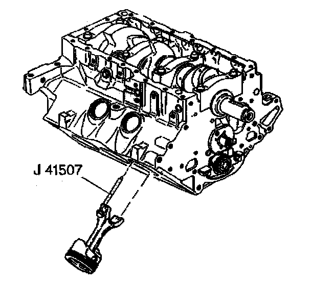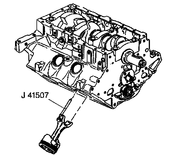 10. Using hand pressure on J41507, push the connecting rod assembly towards the top of the cylinder.