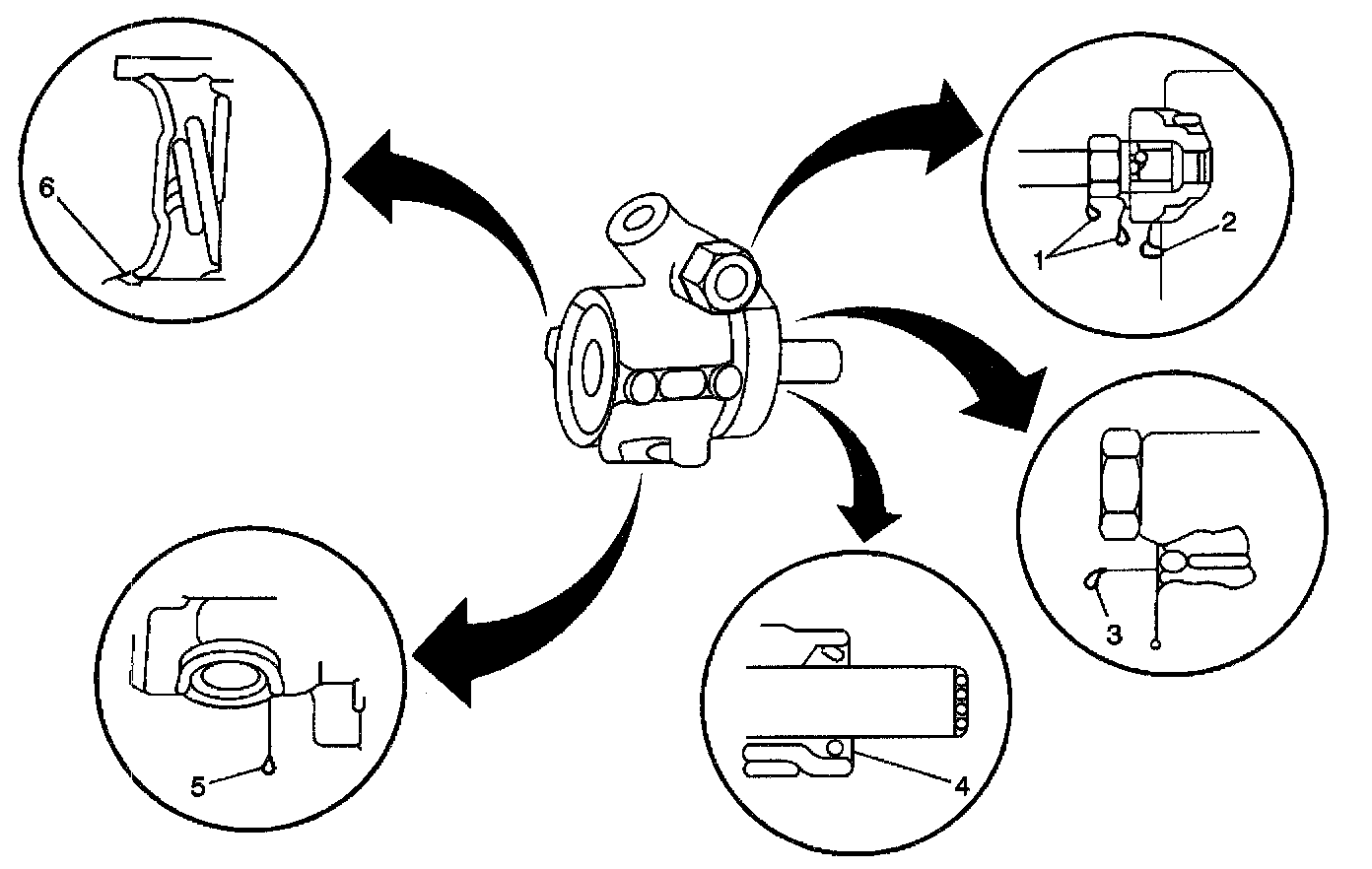2. Replace the O-ring seal if leakage persists. If the leakage is due to damaged threads, repair the fitting nut or replace the line as required. If the housing threads are badly damaged, replace the housing (6).