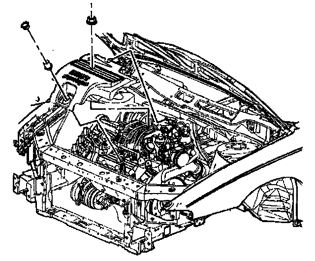 2. Insert the tab of the fuel injector sight shield under the engine bracket.