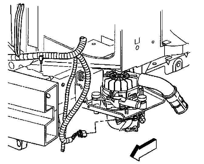 5. Place the AIR exhaust hose pinch clamp around the AIR pump outlet port and exhaust hose connection.