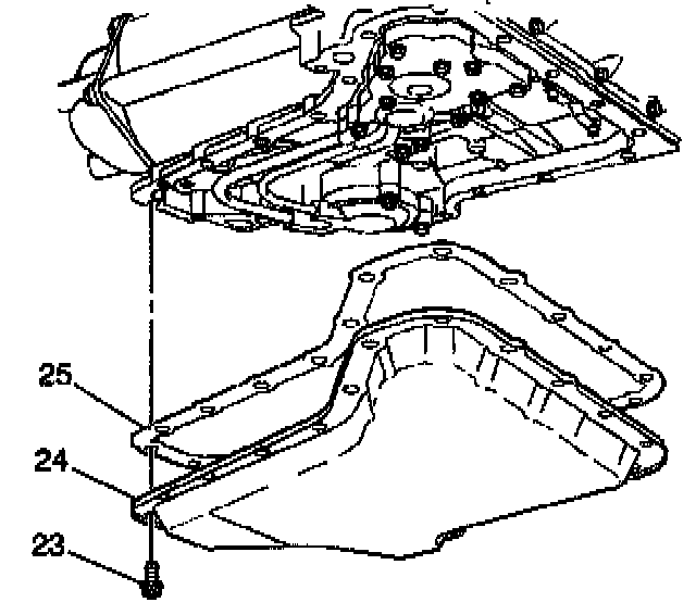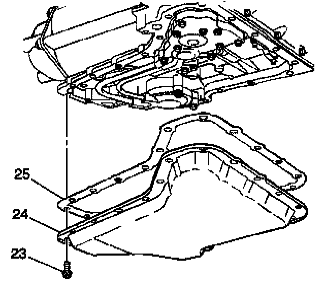 4. Remove the oil pan bolts (23) from the sides.