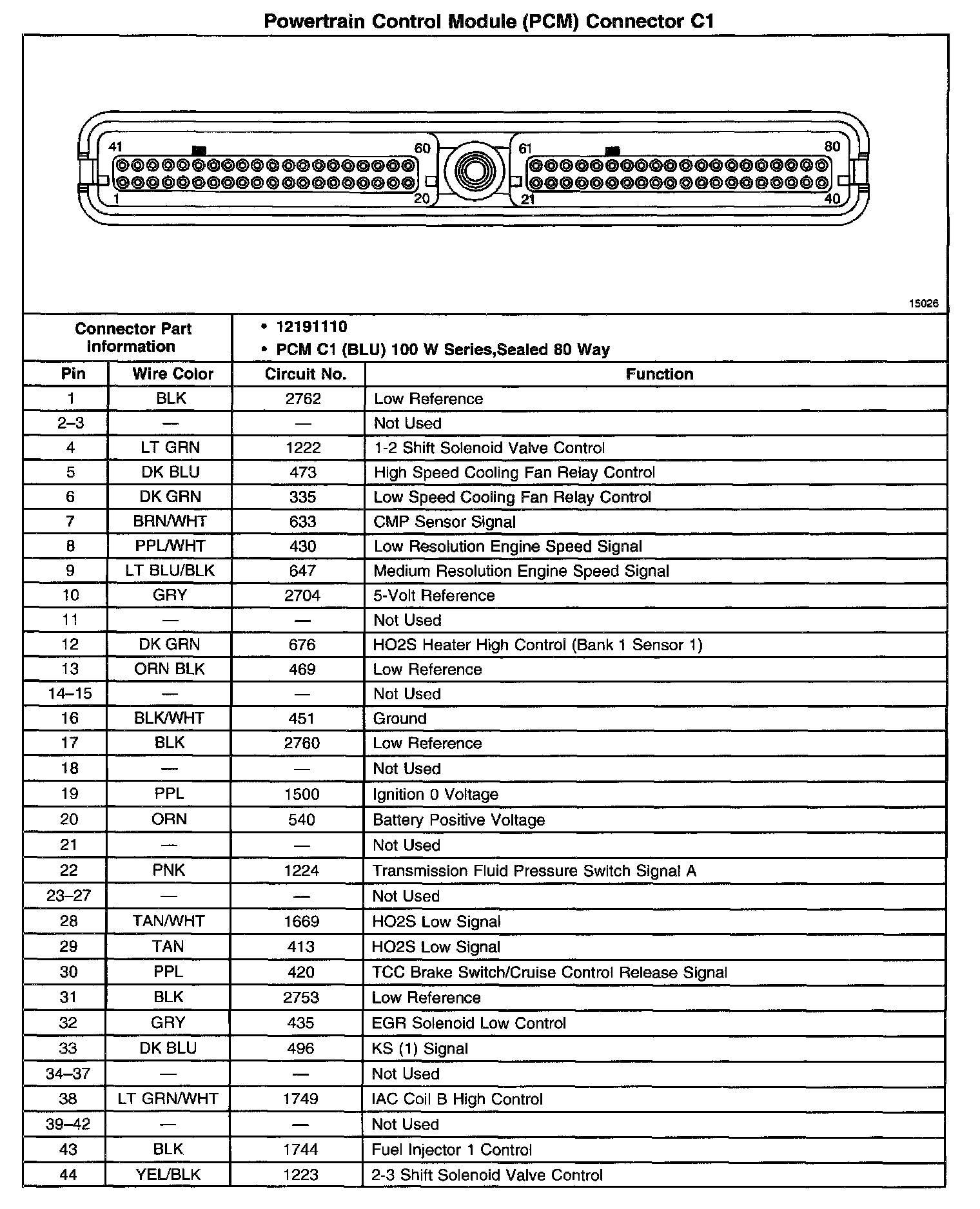 Powertrain Control Module (PCM) Connector C1 (Part 1 Of 2):