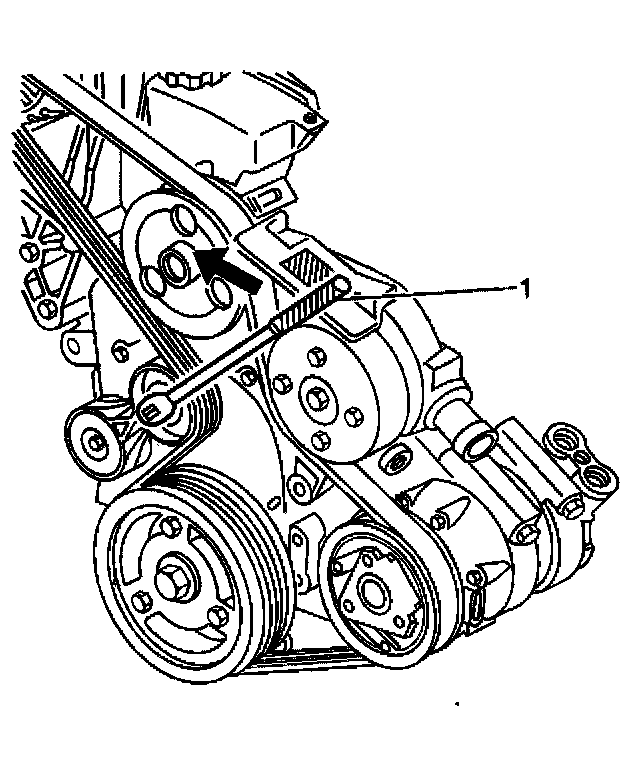 1. Remove the drive belt tension by lifting or rotating the drive belt tensioner off of the drive belt, using a 3/8-inch breaker bar (1).