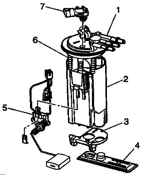 5. Remove the fuel level sensor (5) from the fuel sender assembly.