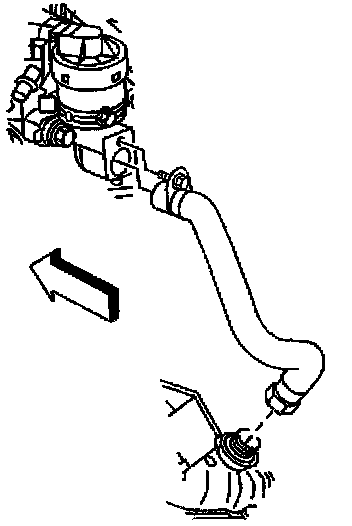 2. Remove the bolt retaining the pipe assembly from the EGR valve and carefully pull the pipe assembly back.