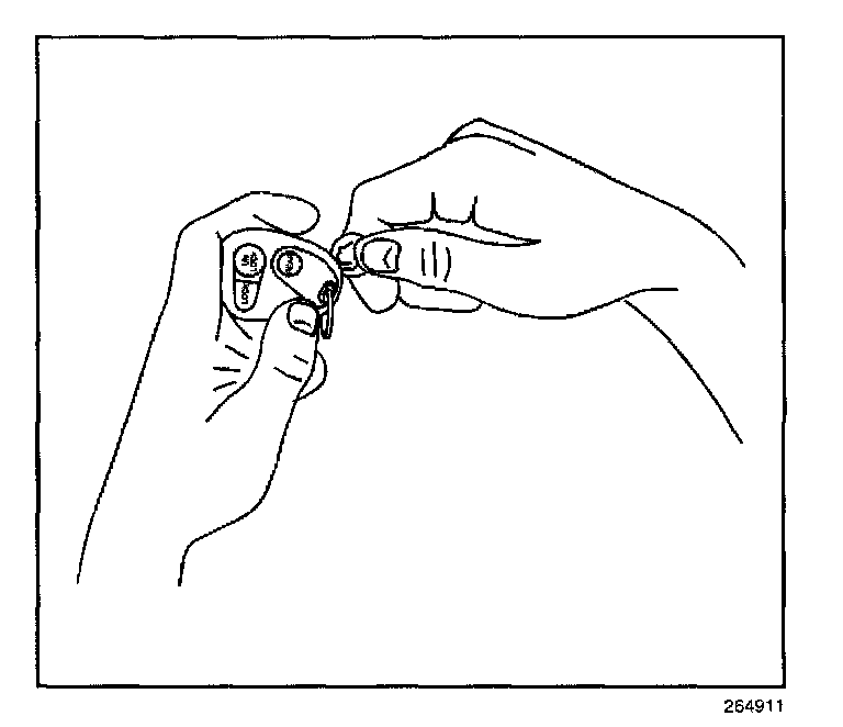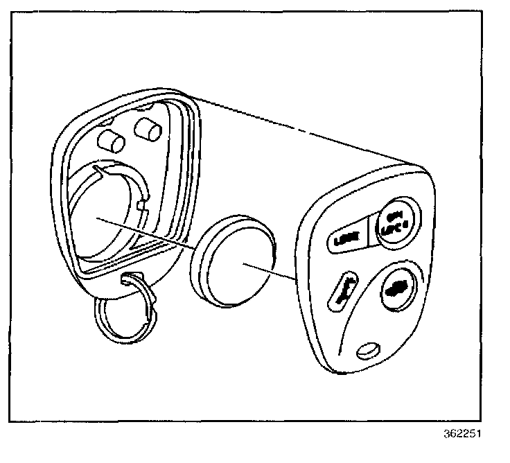 1. Insert a small coin between the two halves of the transmitter case at the slot provided near the key ring hole.