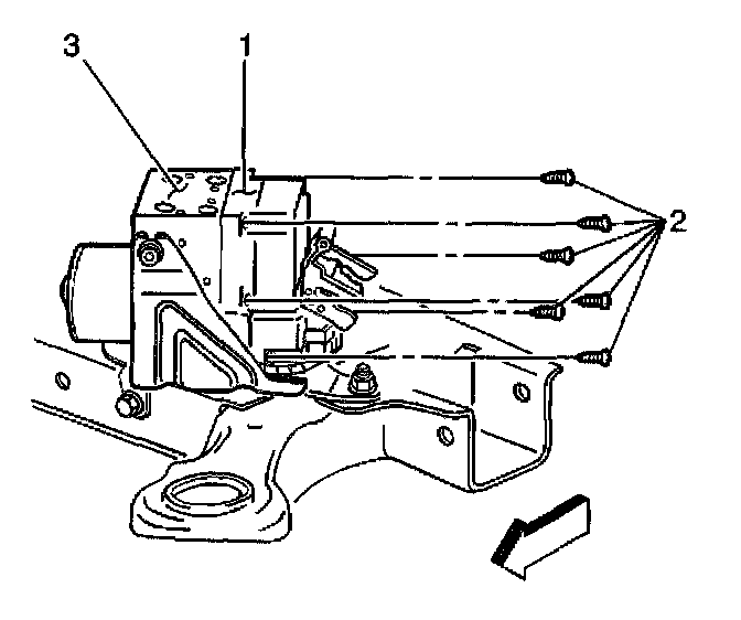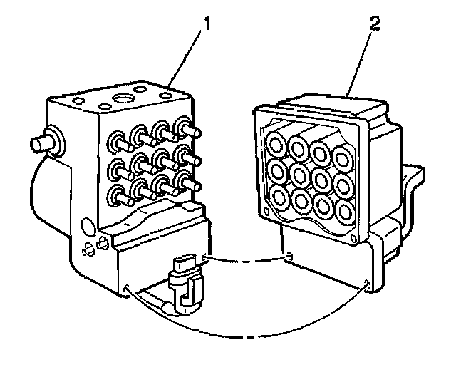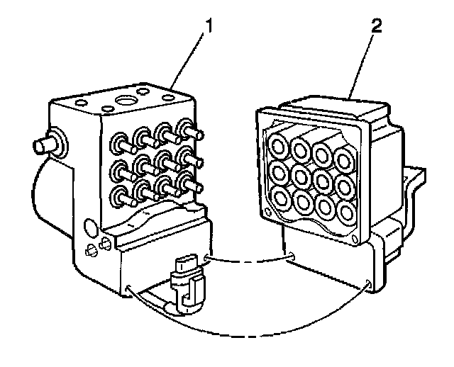 2. Install the Electronic Brake Control Module (EBCM) (2) to the BPMV (1).