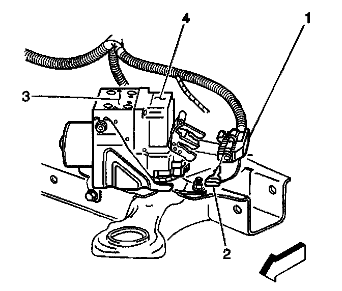 8. Disconnect the EBCM electrical connector (1) from the EBCM (4).