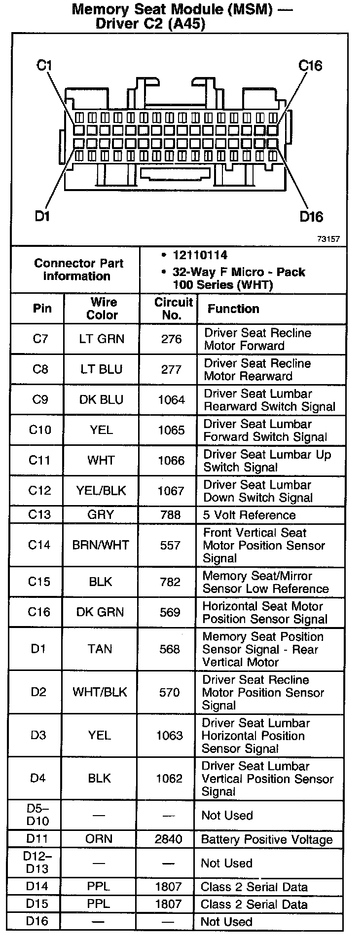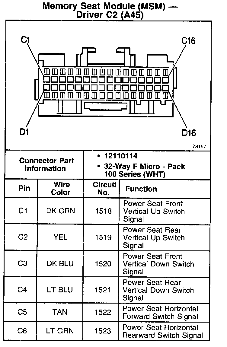Memory Seat Module (MSM) - Driver C2 (A45) (Part 1 Of 2):
