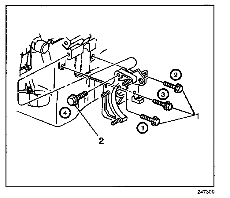 2.2. Tighten the front bracket bolt (2) to 50 N.m (37 lb ft).