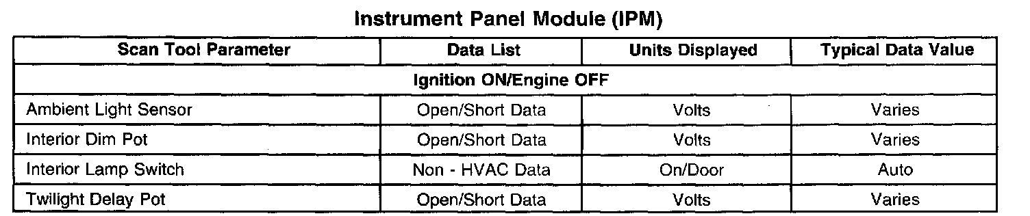 Scan Tool Data List - Instrument Panel Module (IPM)