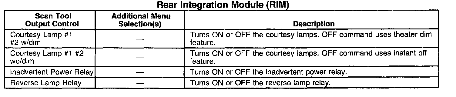Scan Tool Output Controls - Rear Integration Module (RIM)