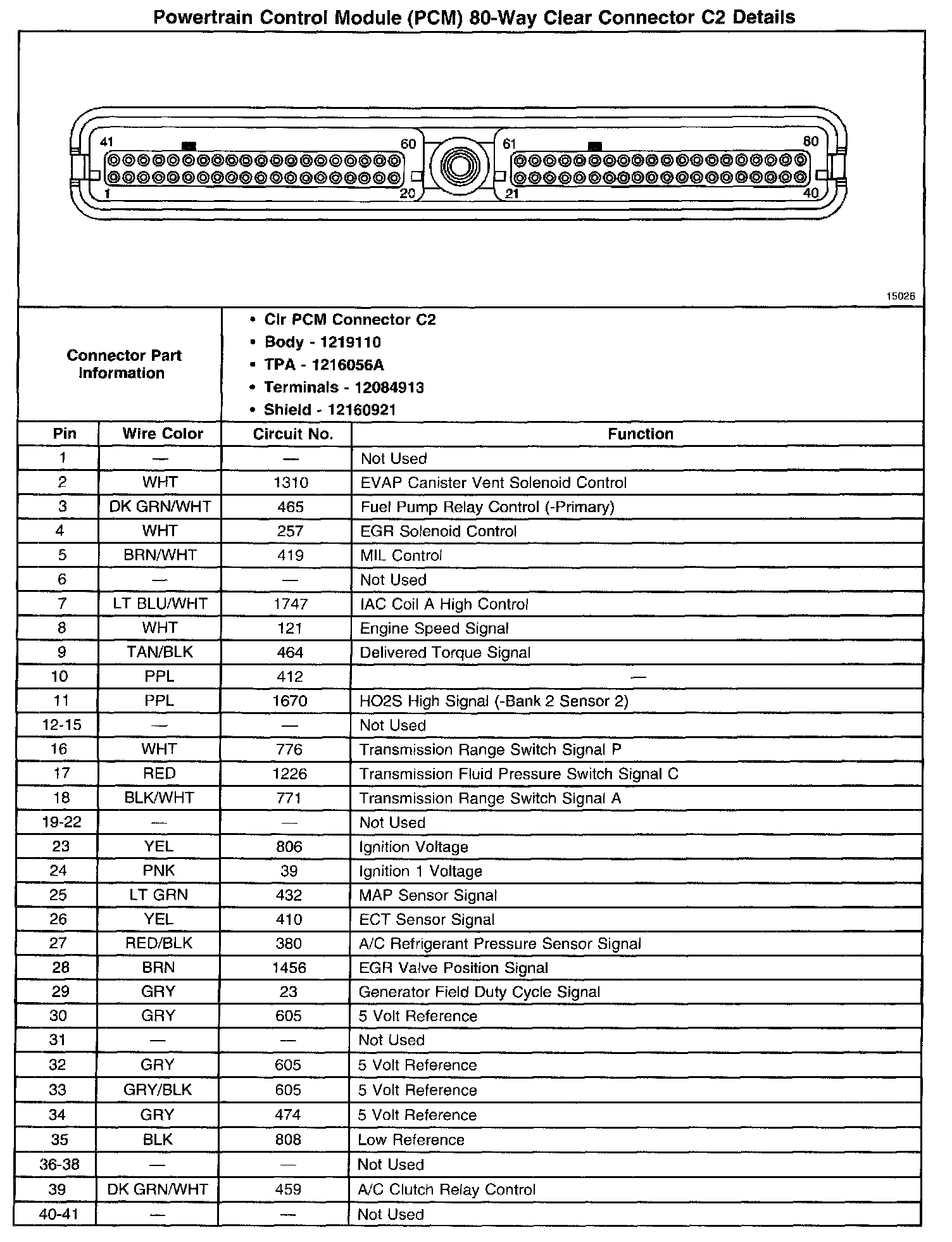 Powertrain Control Module (PCM) 80-Way Clear Connector C2 Details (Part 1 Of 2):