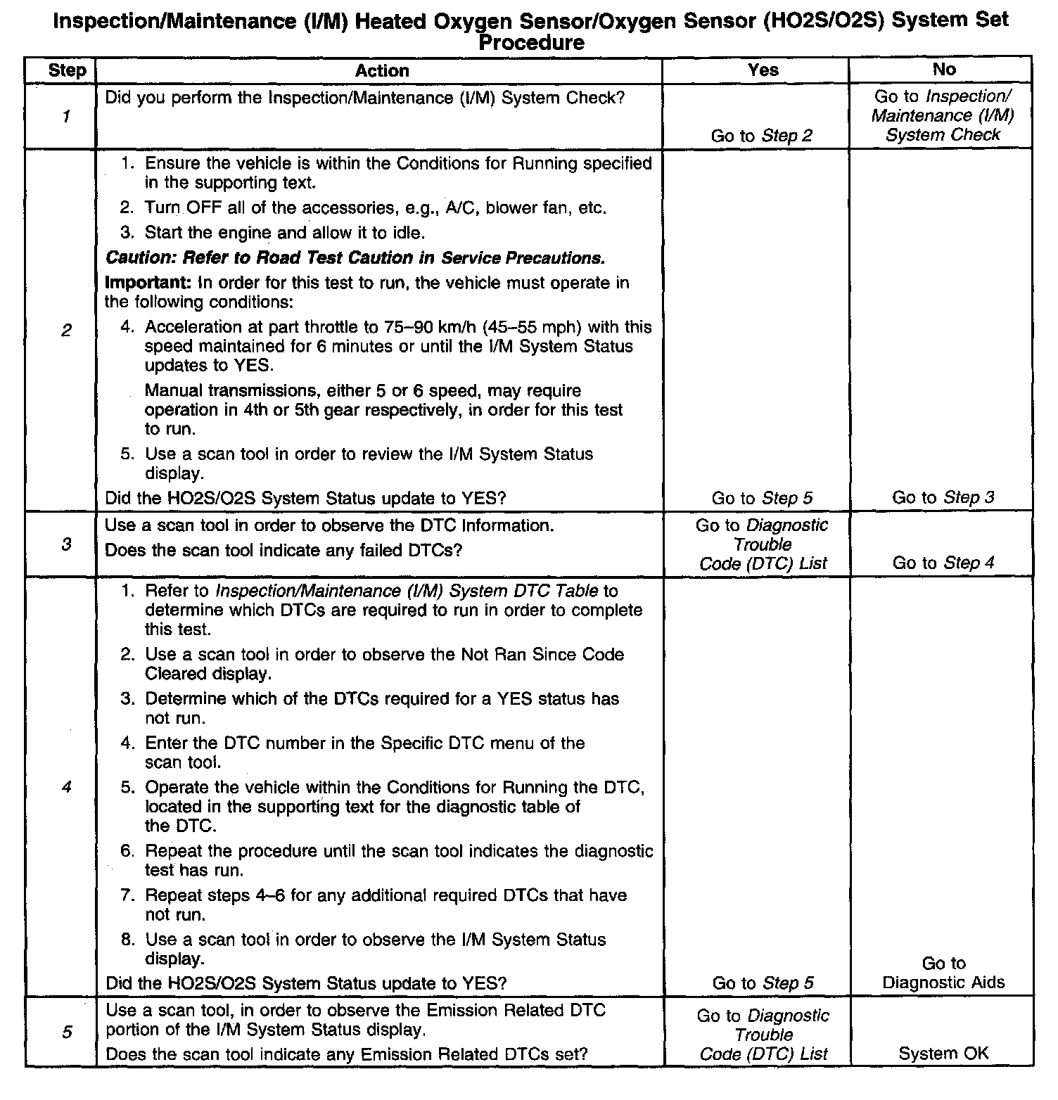 1. Make sure you perform the I/M System Check before performing this test. Failure to do so may result in difficulty updating the status to YES. Inspection/Maintenance (I/M) System Check