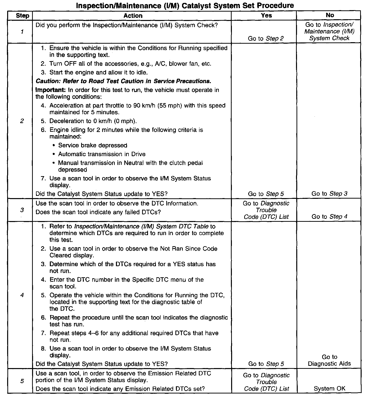 1. Make sure you perform the I/M System Check before performing this test. Failure to do so may result in difficulty updating the status to YES. Inspection/Maintenance (I/M) System Check