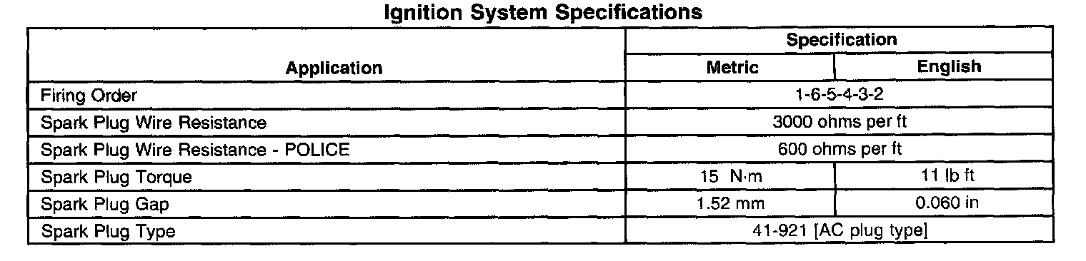 Ignition System Specifications: