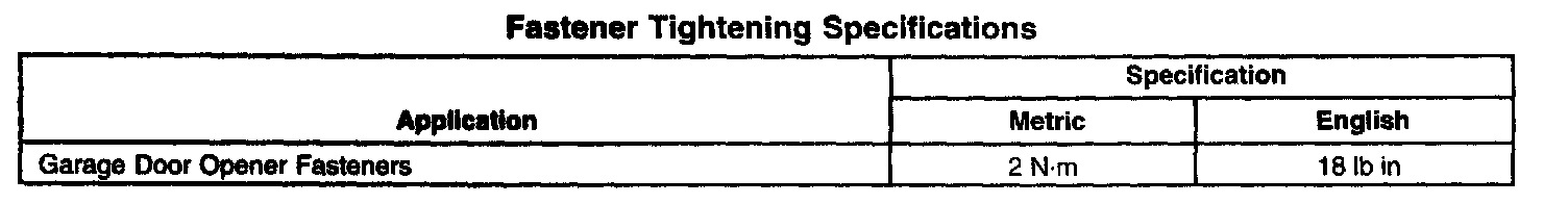 Fastener Tightening Specifications:
