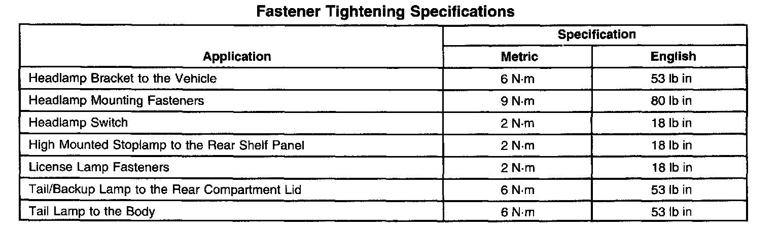 Fastener Tightening Specifications: