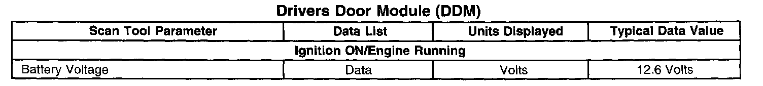 Scan Tool Data List - Drivers Door Module (DDM)