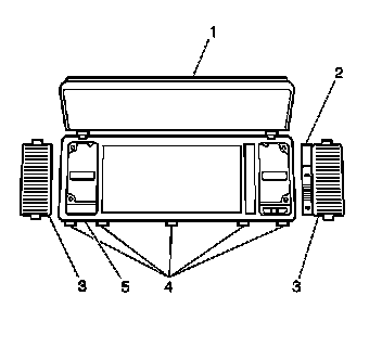 5. Disconnect the wire connectors from the vanity (5) on vehicles equipped with a lighted vanity.