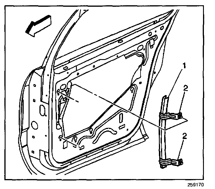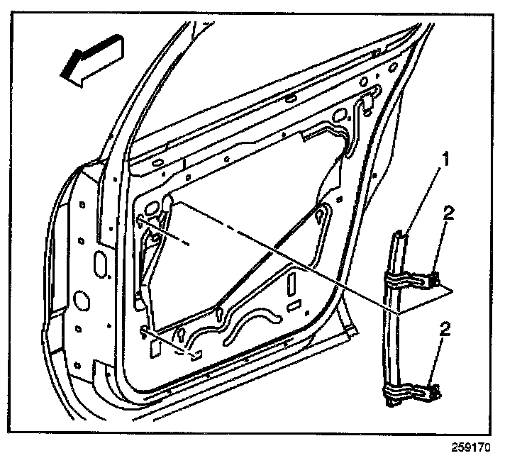 5. Lift the channel so that the fasteners will clear the keyhole slots in the door panel.
