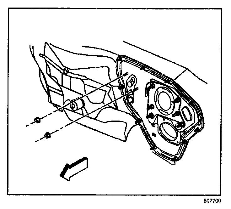 10. Remove the HVAC module assembly mounting nuts from the cowl.