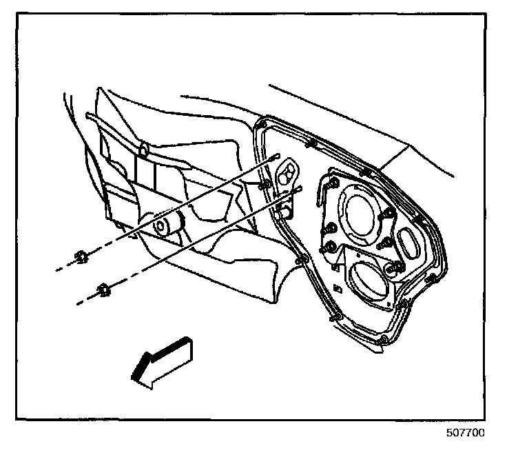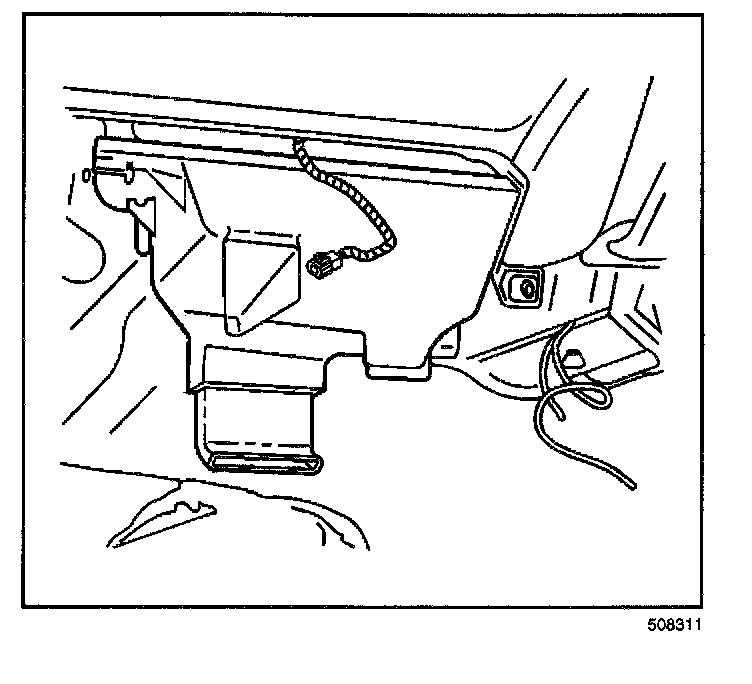 IMPORTANT: Position the heater core outlet cover downward and rearward in order to disconnect the cover from the rear area floor duct assembly.
