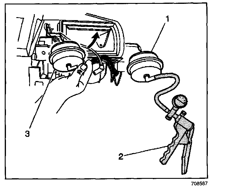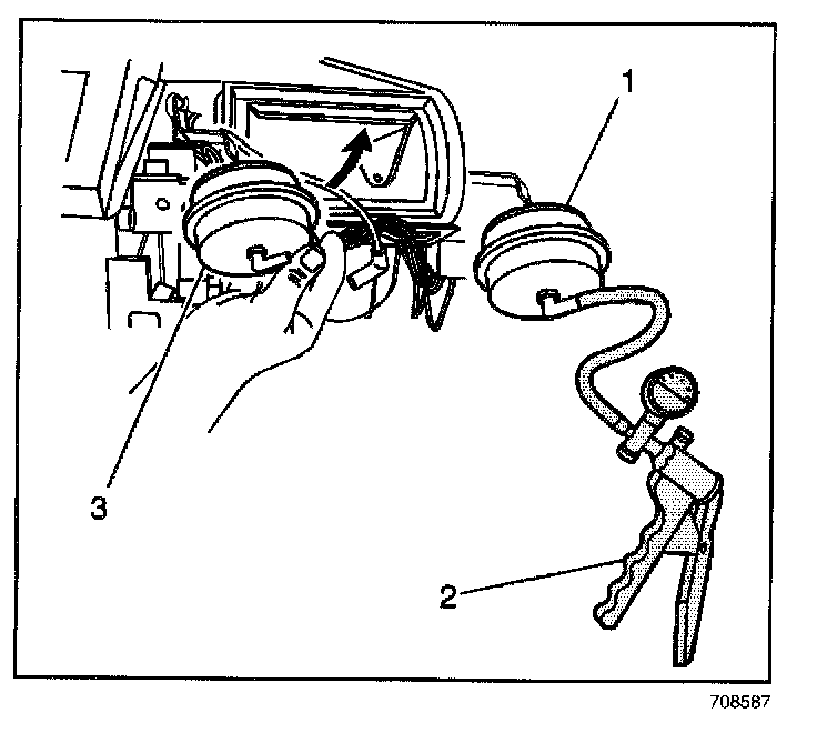 6. Using the hand vacuum pump (2) open the recirculation actuator door.