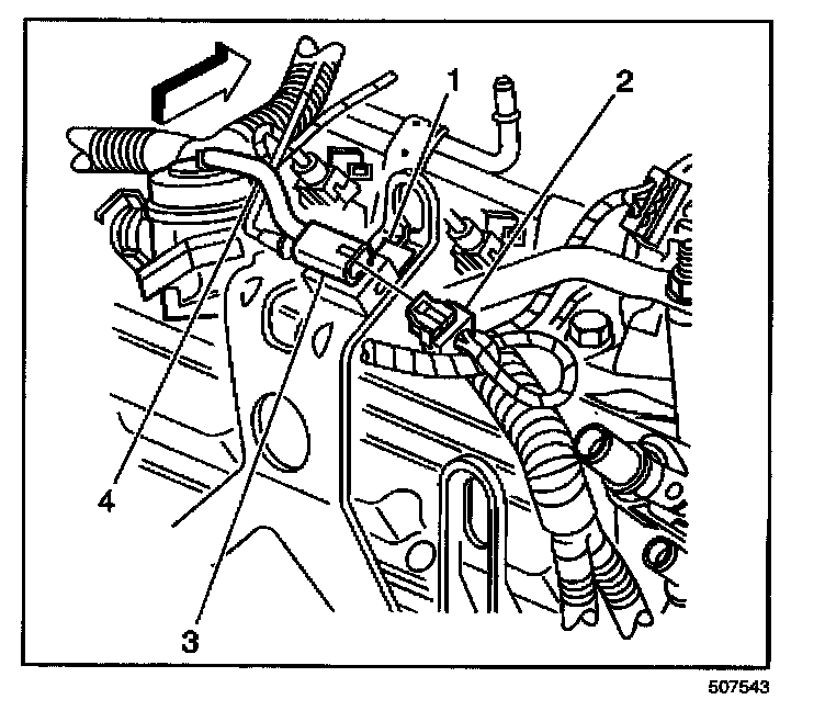 1. Disconnect the vacuum lines (4) from the solenoid (3).