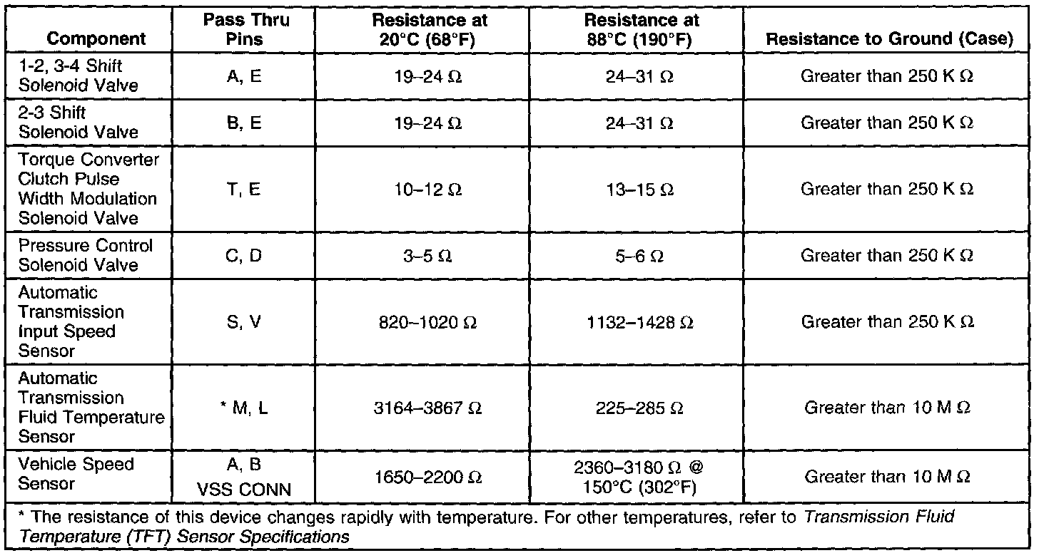 Transmission Fluid Temperature (TFT) Sensor Specifications