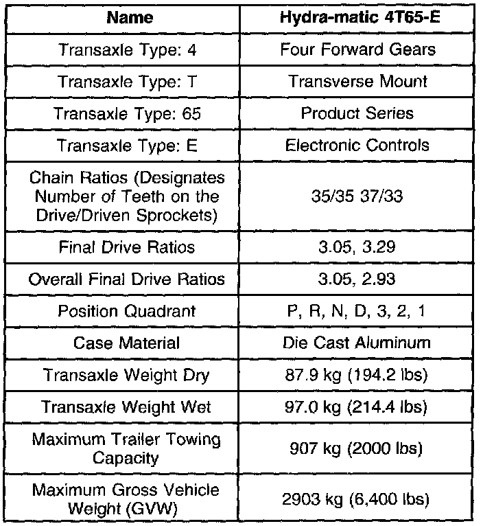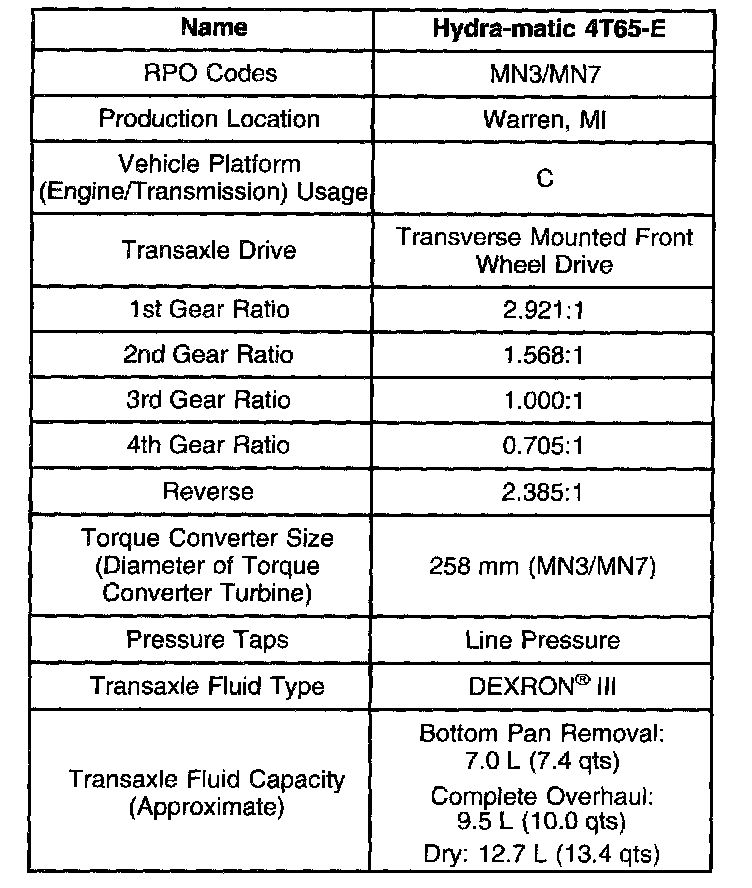 Transmission General Specifications