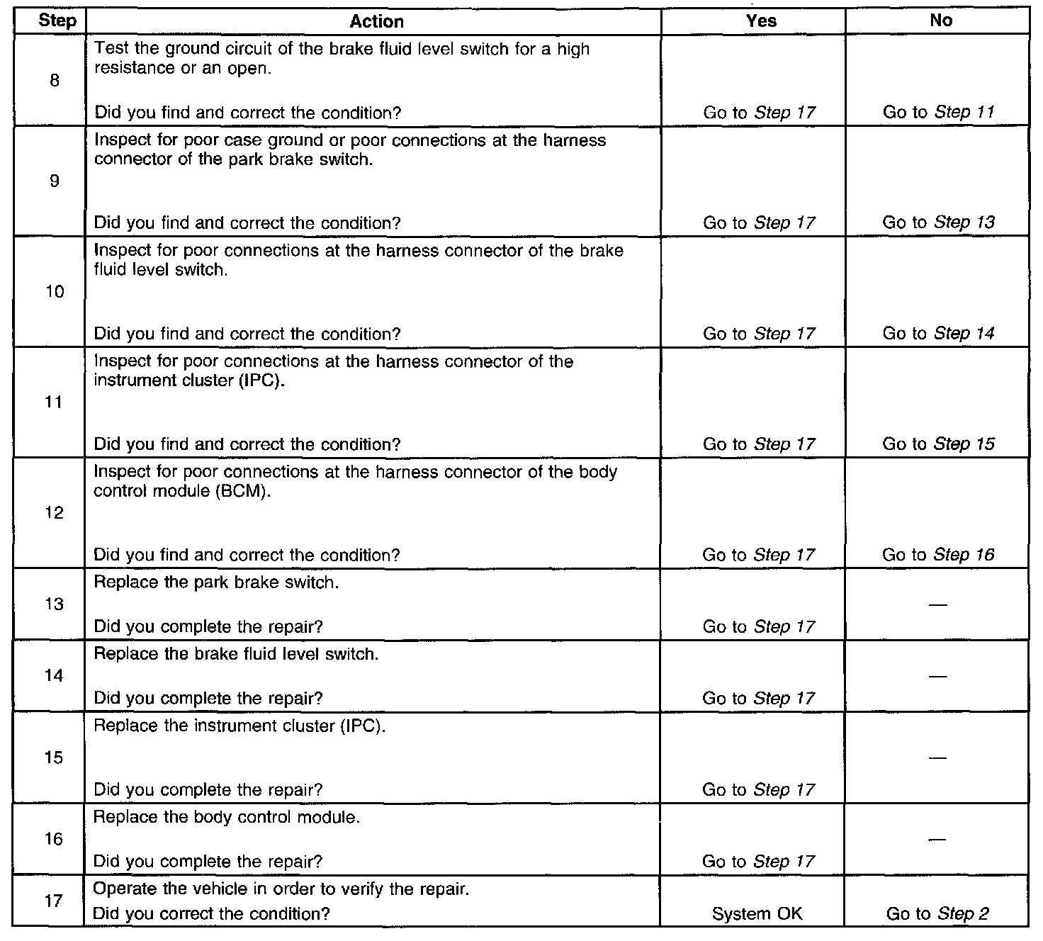 Brake Warning Indicator Inoperative