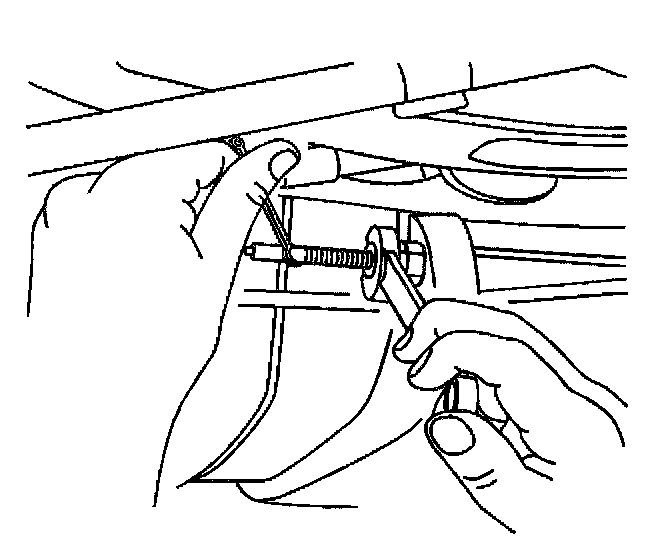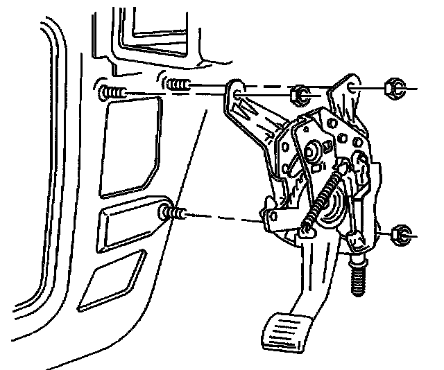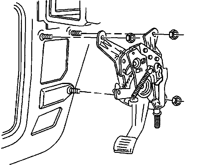 9. Remove the 3 park brake pedal assembly retaining nuts from the body mounting studs.