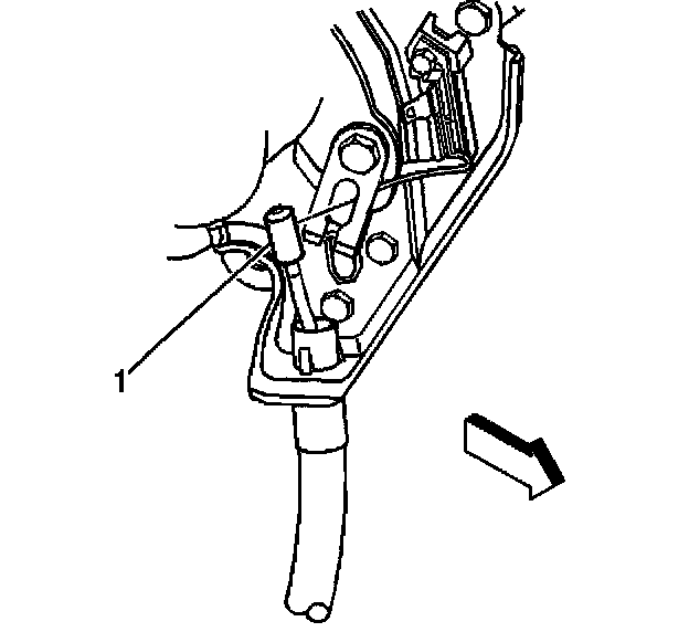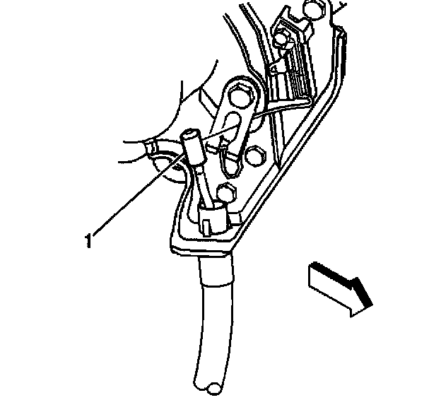 10. Remove the retaining clip and disconnect the parking brake cable (1) from the park brake pedal assembly.