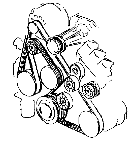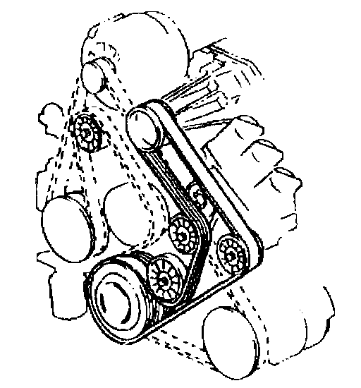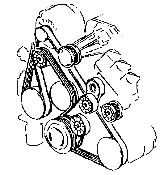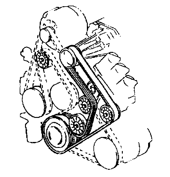 The supercharged 3800 engine utilizes two drive belts. The outer drive belt drives the supercharger. The inner drive belt drives the following components:
