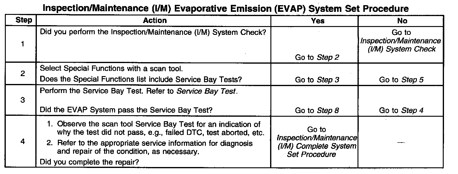 INSPECTION/MAINTENANCE (I/M) EVAPORATIVE EMISSION (EVAP) SYSTEM SET PROCEDUREDESCRIPTION