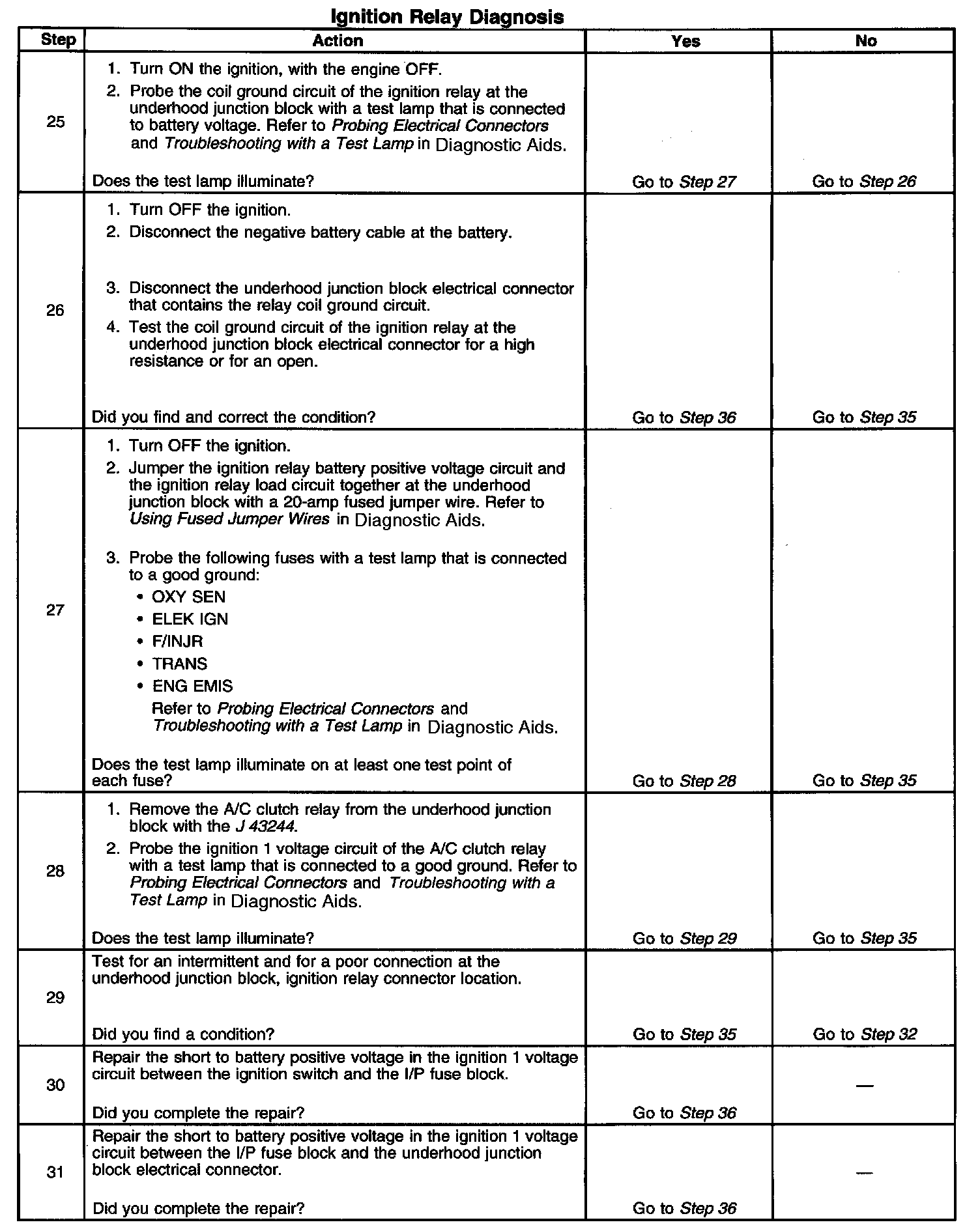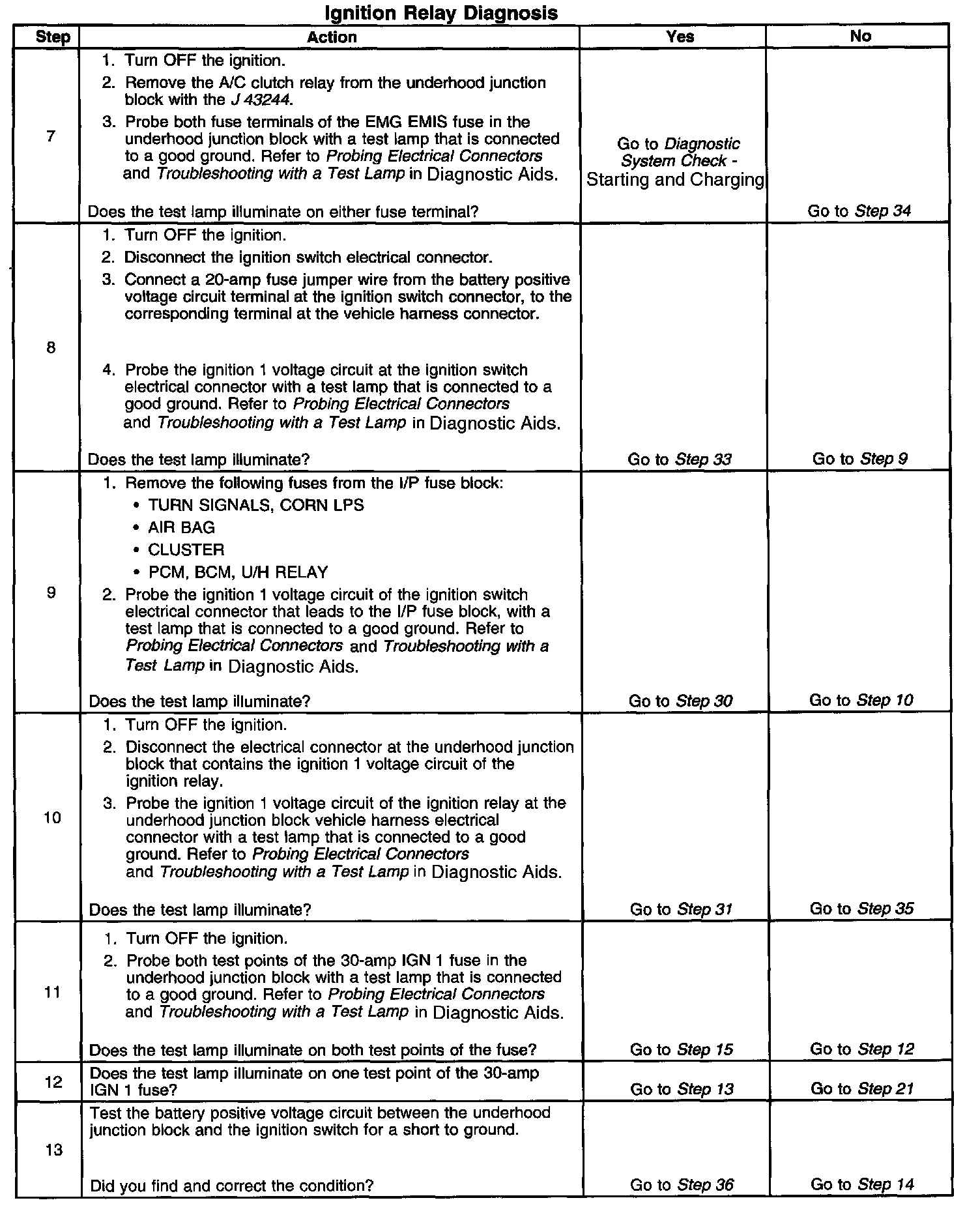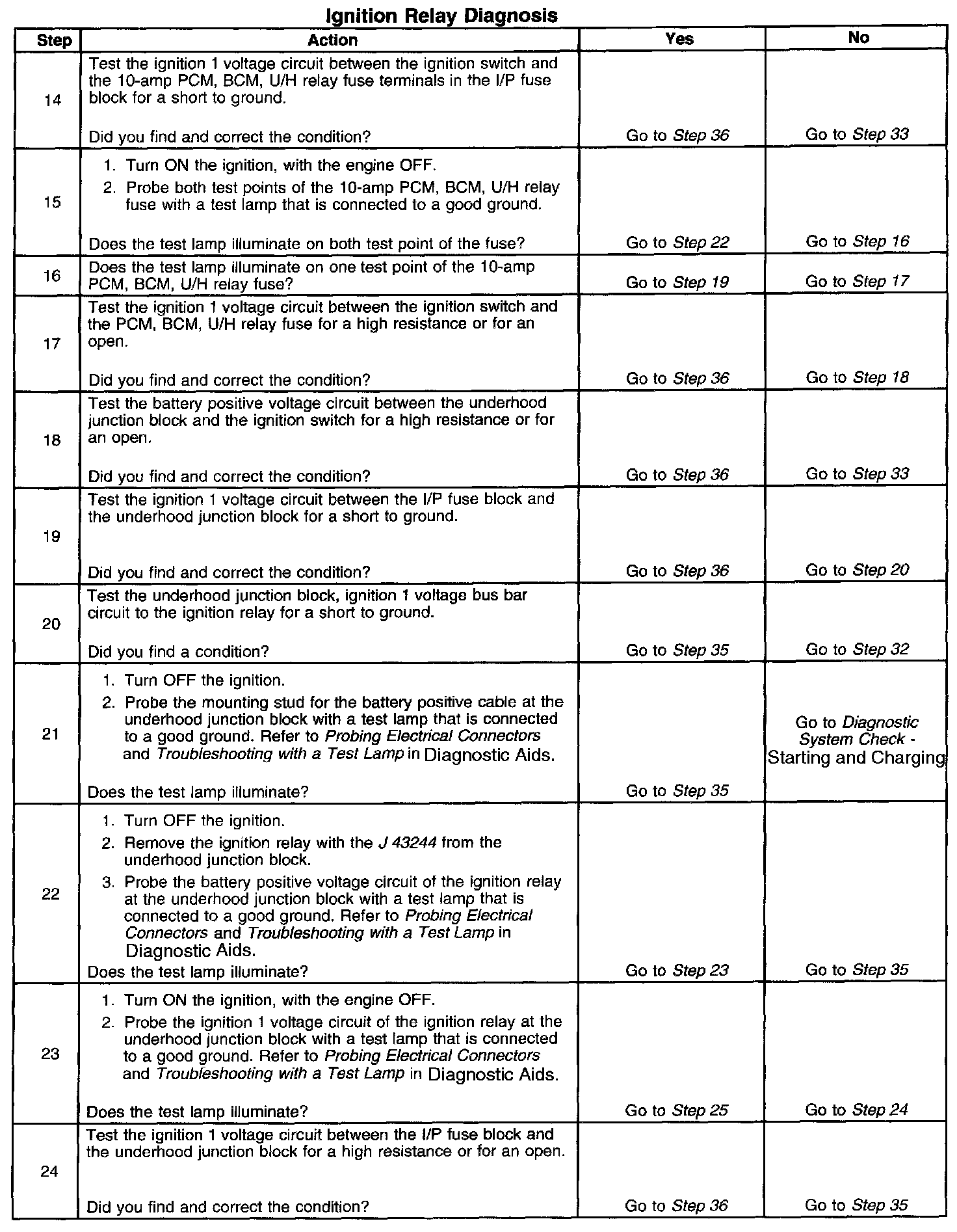 The ignition relay table assumes that the vehicle battery is fully charged.