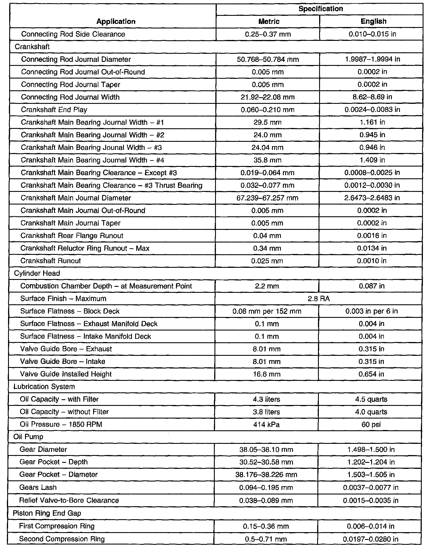Engine Mechanical Specifications