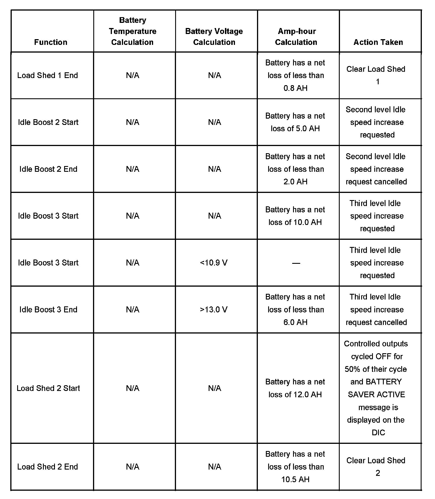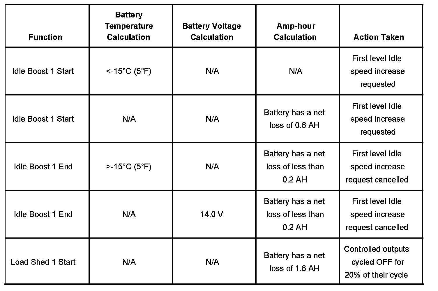 Each load management function, either idle boost or load-shed, is discrete. No two functions are implemented at the same time.