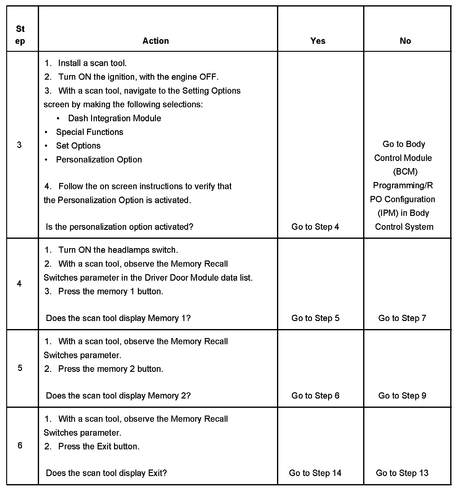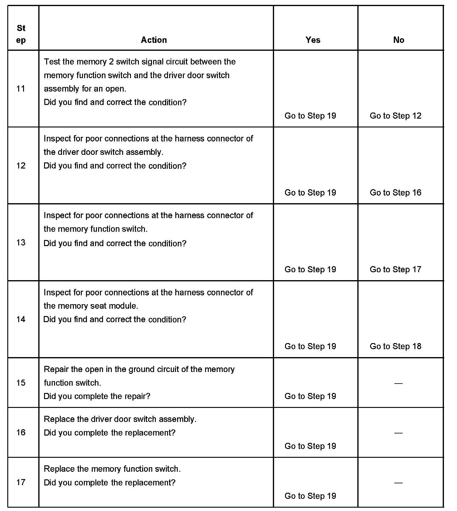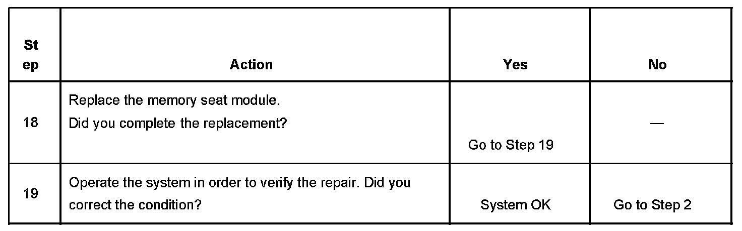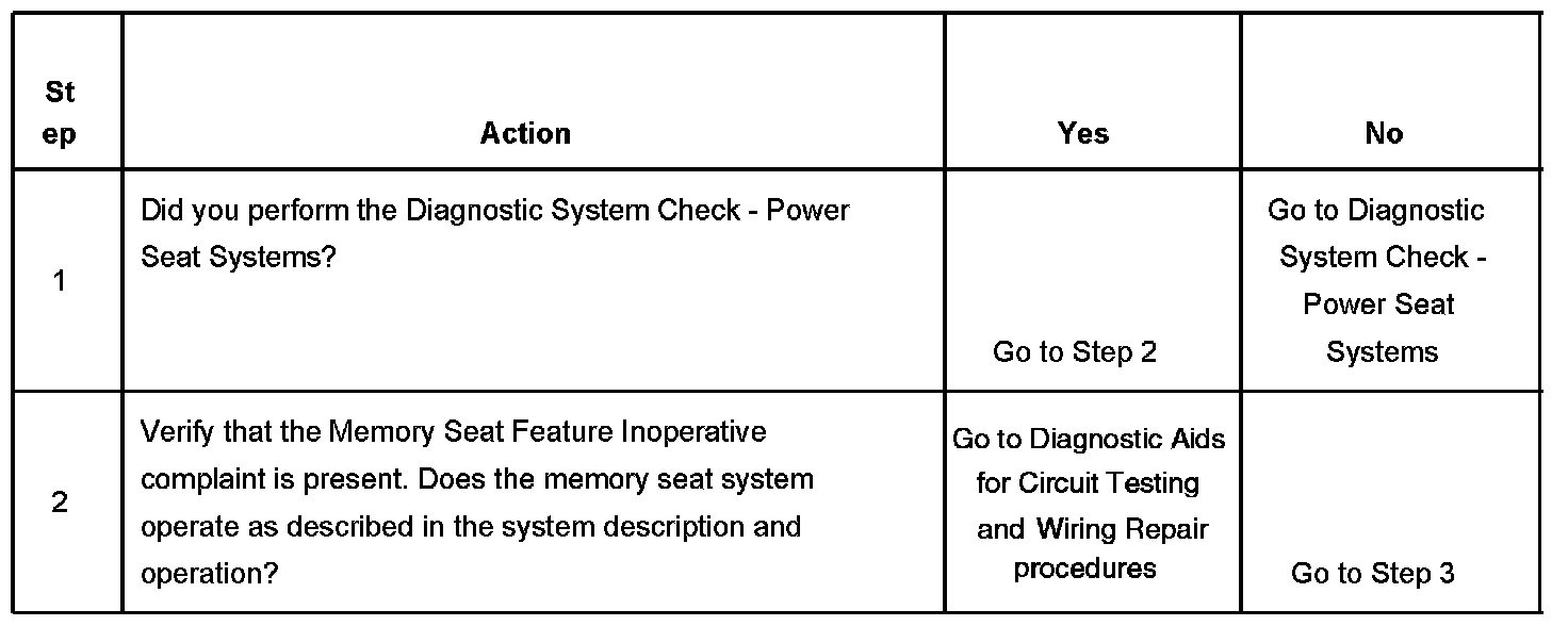 MEMORY SEAT FEATURE INOPERATIVETEST DESCRIPTION