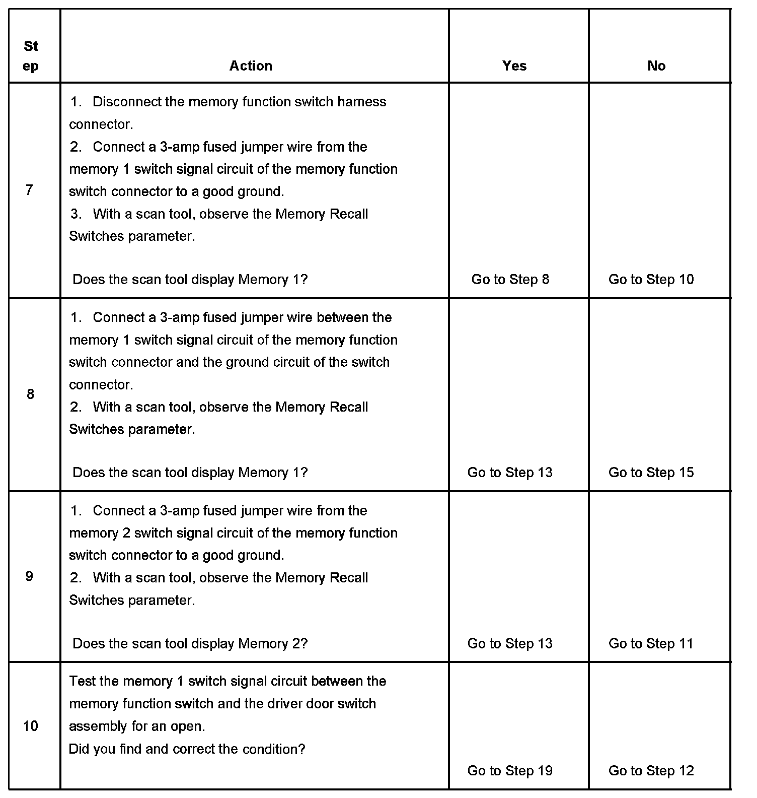 4. Turning ON the headlamps switch in this step eliminates the possibility of the memory function switch finding an alternative path to ground through the illumination circuit.