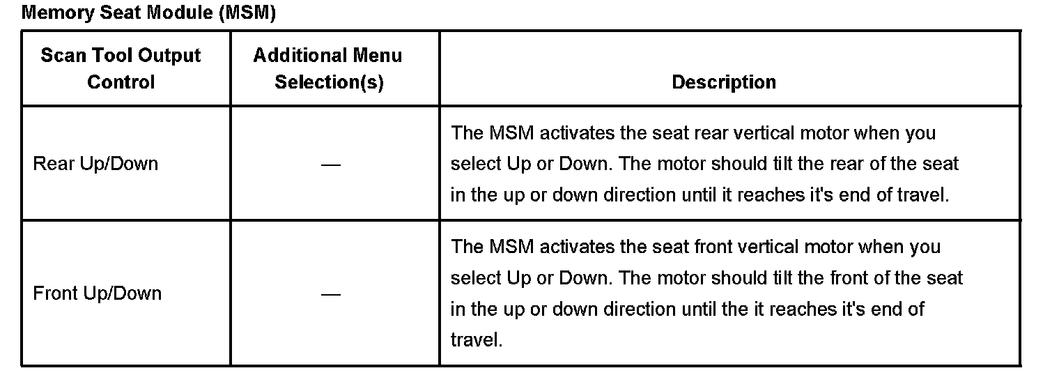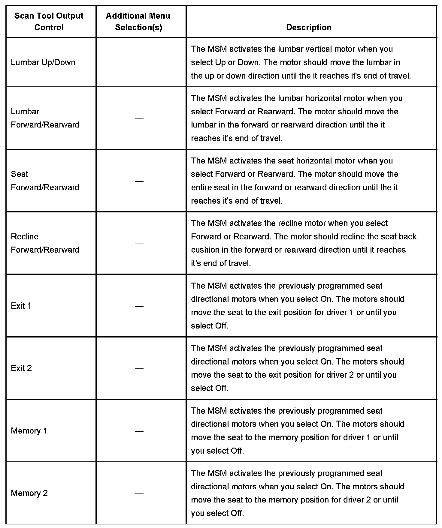 Scan Tool Output Controls - Memory Seat Module (MSM)
