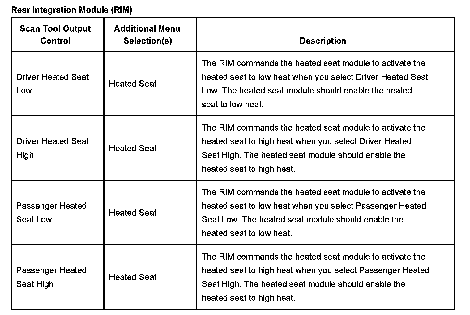 Scan Tool Output Controls - Rear Integration Module (RIM)