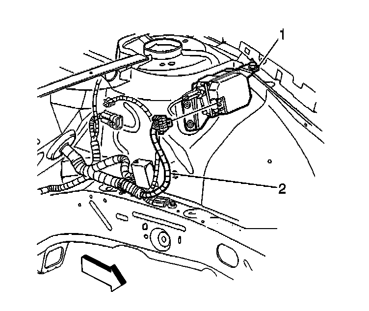 4. Remove the cruise control module and bracket assembly (2) from the vehicle.
