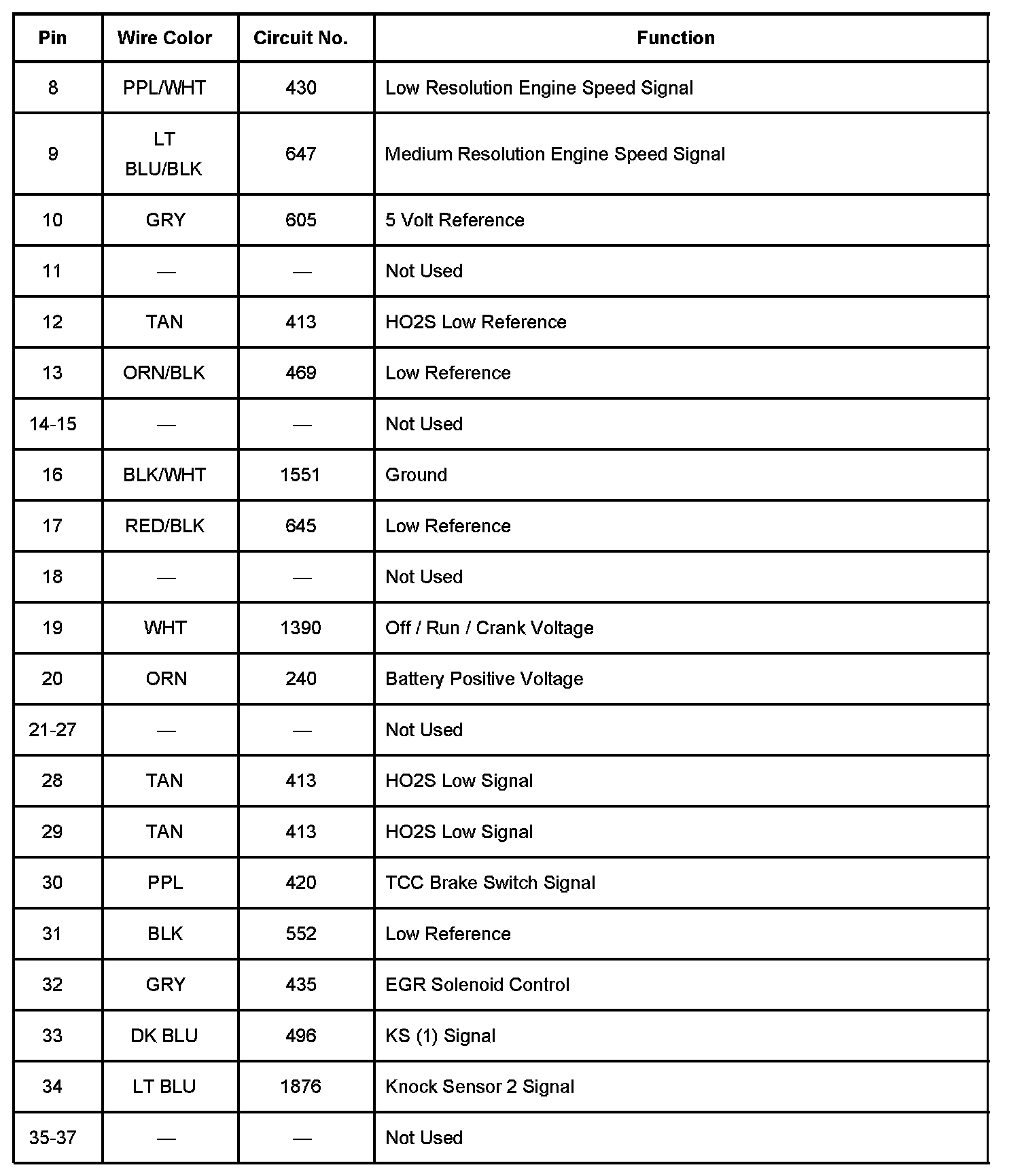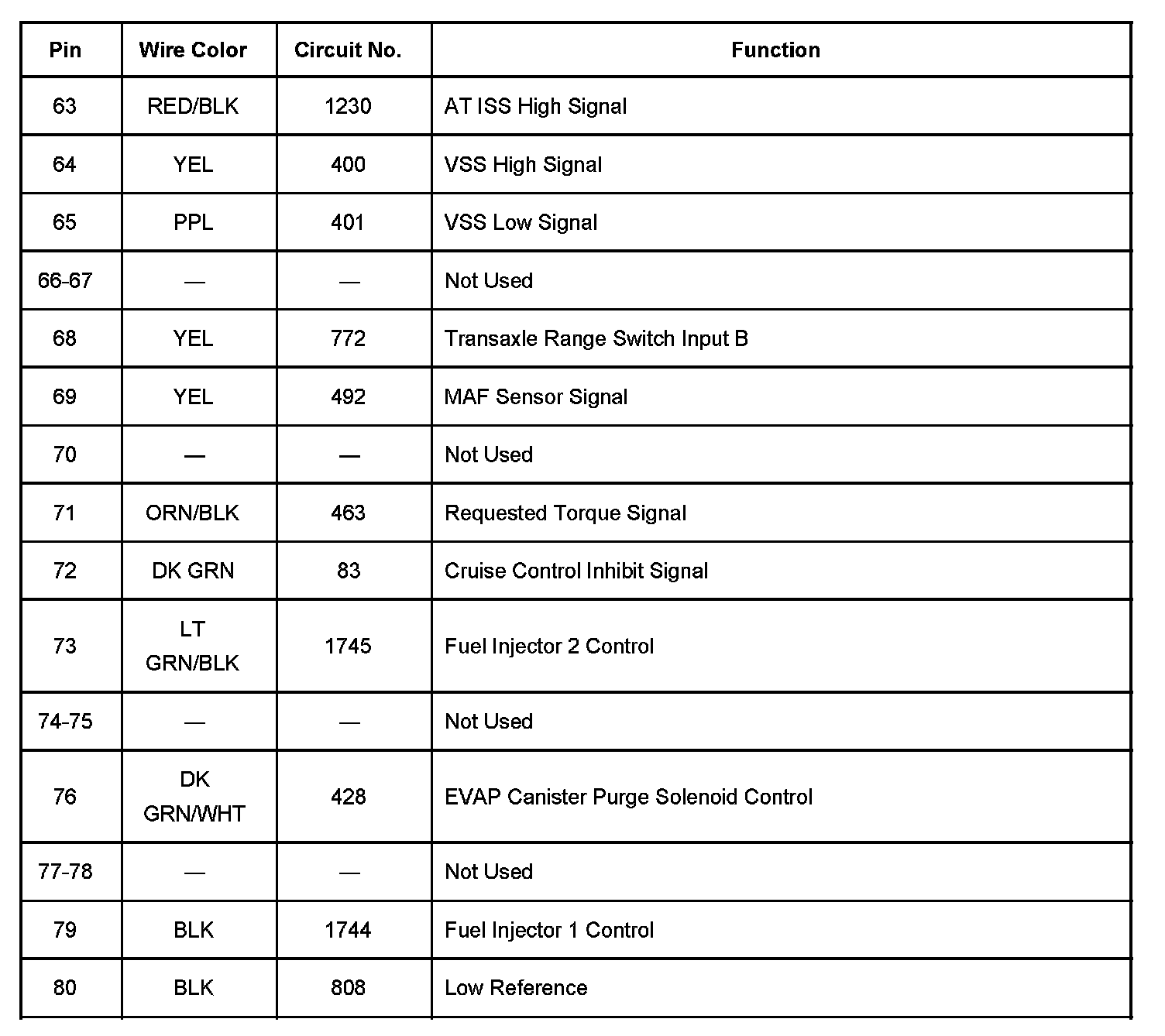 PCM 80-Way Blue Connector C1 Details Part 2: