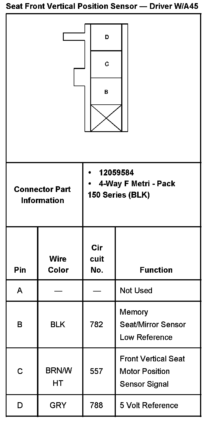 Seat Front Vertical Position Sensor - Driver With RPO Code A45: