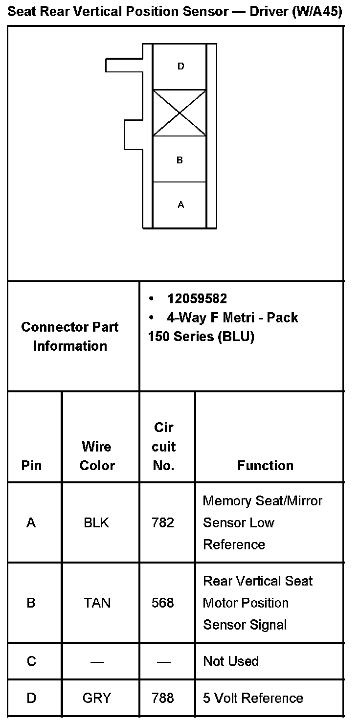 Seat Rear Vertical Position Sensor - Driver With RPO Code A45: