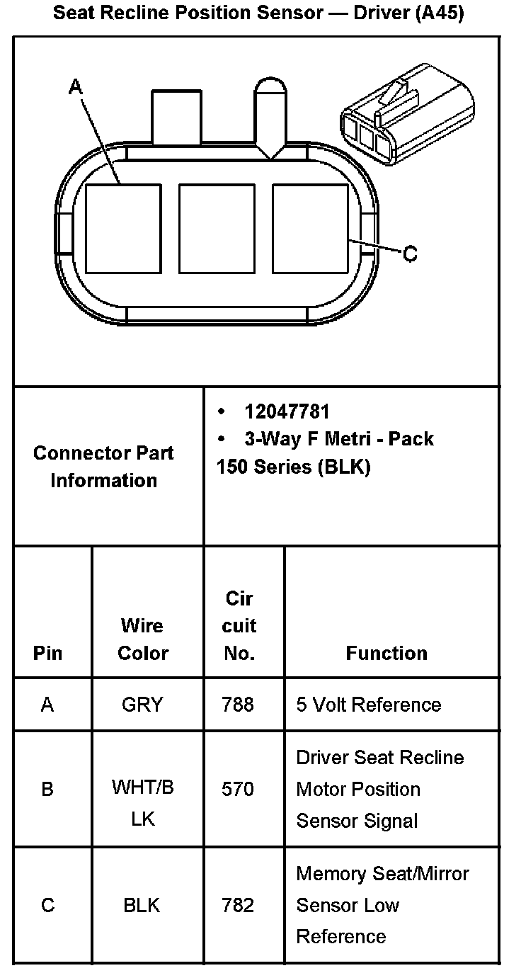 Seat Recline Position Sensor - Driver With RPO Code A45: