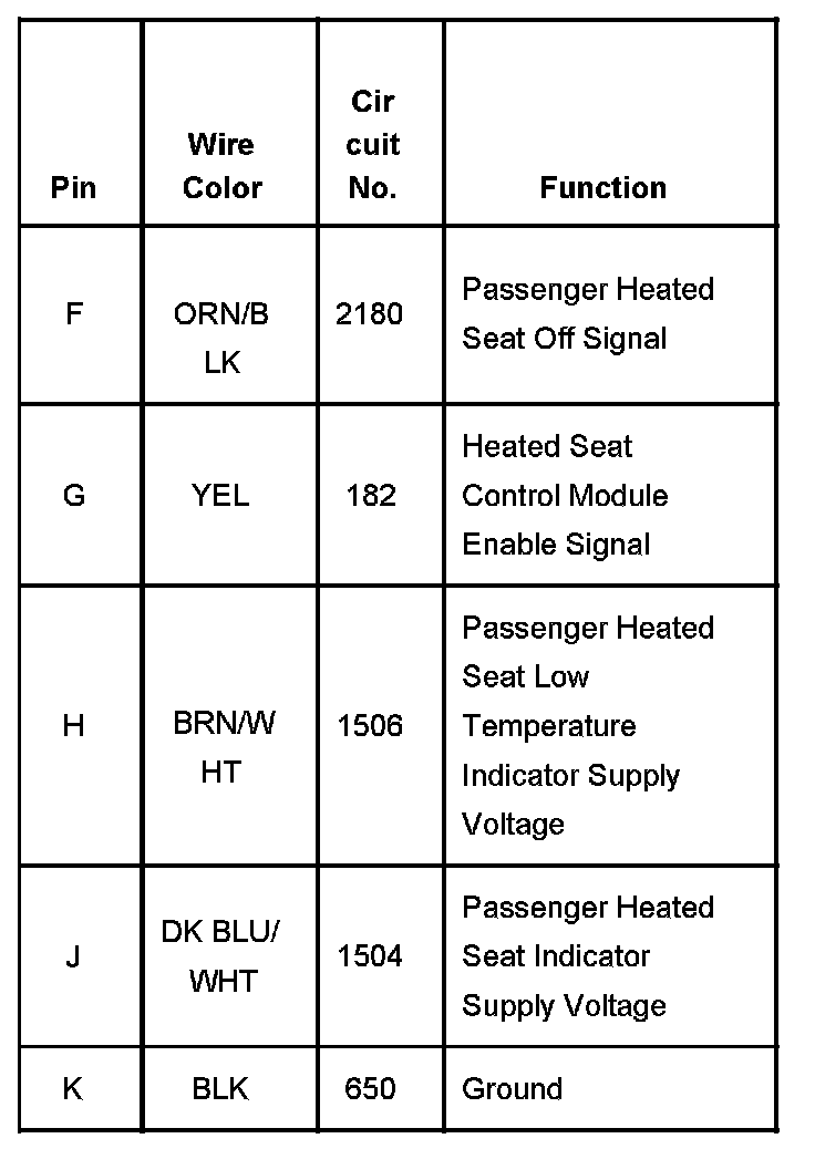Heated Seat Module - Driver (C1) With RPO Codes AG1,A80,KA1 Part 2: