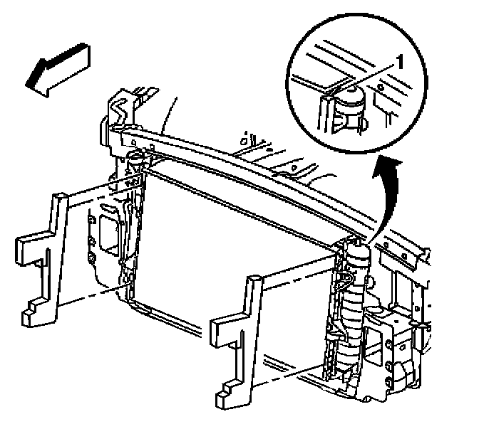 9. Remove the fasteners (1) from the left and right sides of the headlamp and bumper fascia mounting panel.